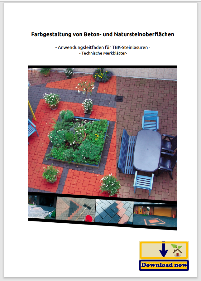 beinhaltet ausschließlich lichtbeständige, anorganische Farbpigmente. - Die in TBK gelösten Feststoffe und Farbpigmente sind mikroskopisch klein und dringen so tief wie physikalisch möglich in eine Oberfläche ein. Es bildet sich ein sehr gut verankertes, tiefes, stabiles kristallines Netzwerk, in dem dann die Farbpigmente fest eingebunden sind.