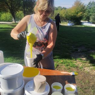 Die Kunstwerke werden von hochqualifizierten Handwerkern, Mitgliedern der ukrainischen Kunststiftung „Art House“, und Teilnehmern des ukrainischen internationalen Pleinair-Programms „Malvana Hata“ hergestellt.